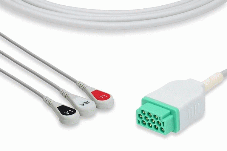GE Compatible Marquette Direct-Connect ECG Cable with 3 Lead Snap